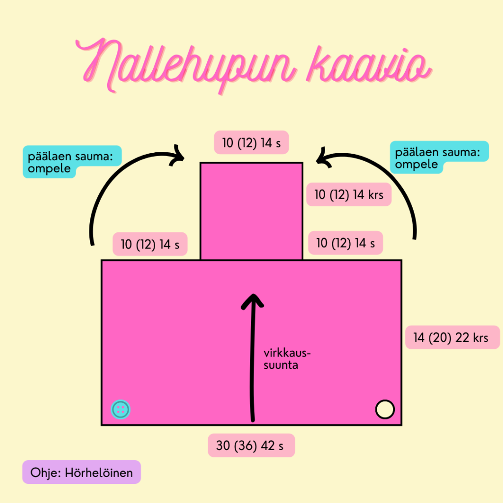 Ohje söpöön huppuun, jossa on nallen korvat. Ohje on helppo ja sopii myös aloittelijoille! Suurin osa hupusta virkataan kiinteillä silmukoilla. Ohjeen voi ladata alta ilmaiseksi PDF-tiedostona. Ohjeessa on kolme kokoa pienestä lapsesta aikuiseen.