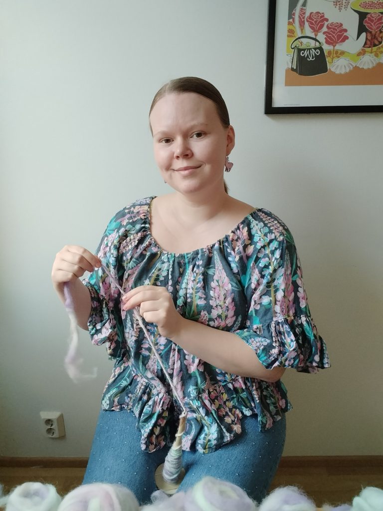 • Olen käyttänyt myös Villa Laurilan villatopseja. Heiltä saa kehräämön ylijäämätuotteena syntynyttä ”kehruujätettä” eli koneesta tippunutta villaa, jota voi kehrätä käsin. Tämä on ekologinen zero waste -vaihtoehto!