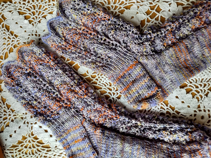 Tekniikka: palmikkoneule, pitsineule, perinteinen kantapää