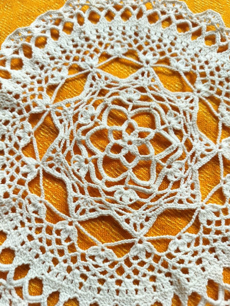 Tekniikka: ruutuvirkkaus, pitsivirkkaus