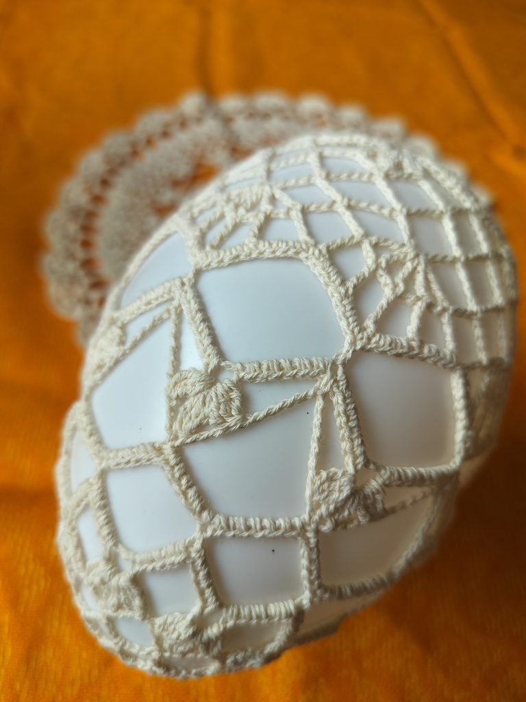 Sievät, virkatut pääsiäiskoristeet.