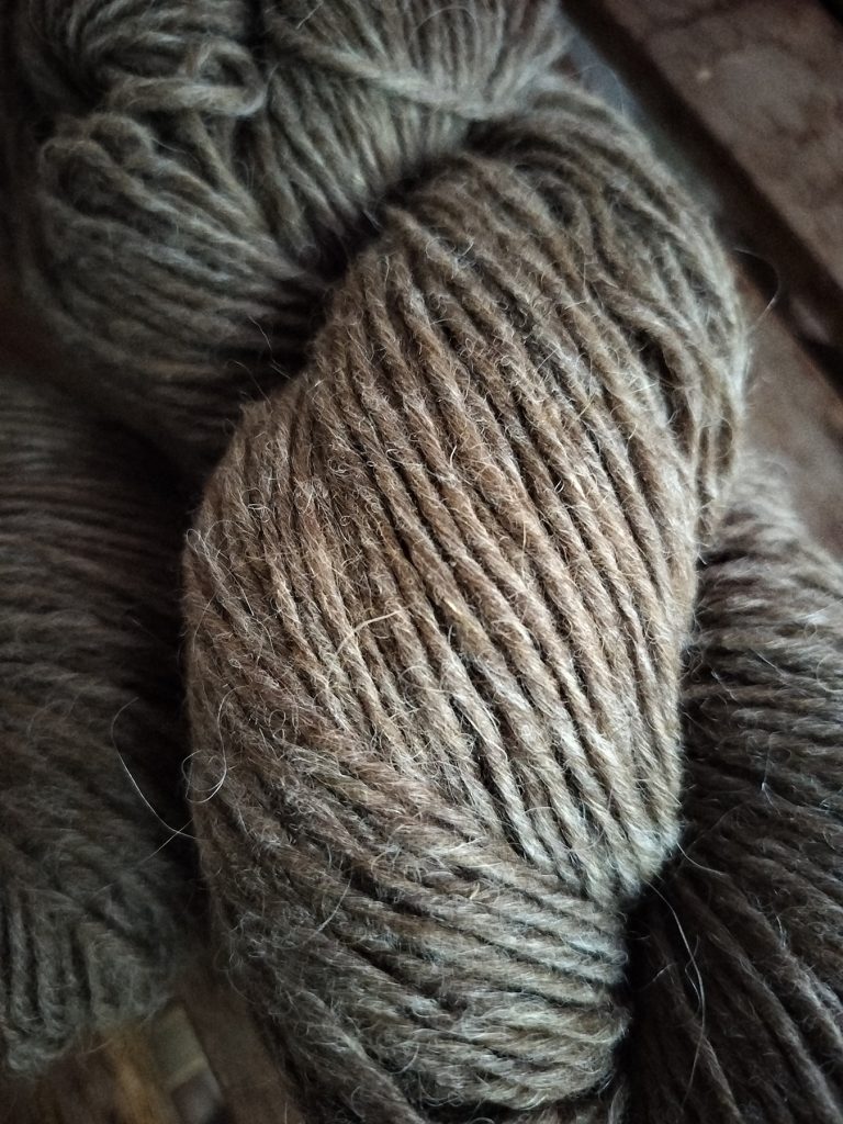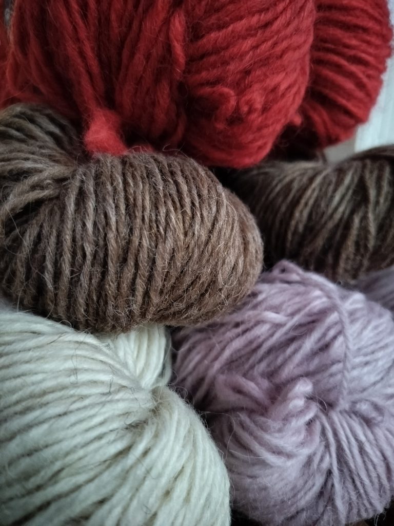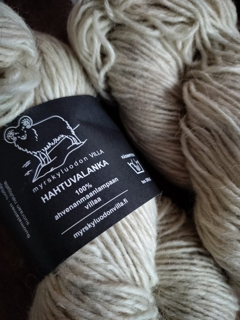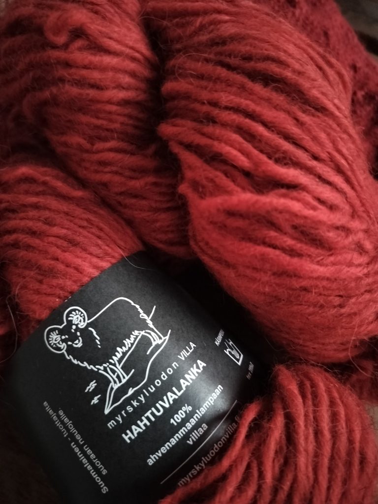 Lanka on Myrskyluodon villan kaksisäikeistä hahtuvalankaa. Lampaat elävät onnellista elämää saaristossa ja Myrskyluodon villa on värjännyt langan itse.